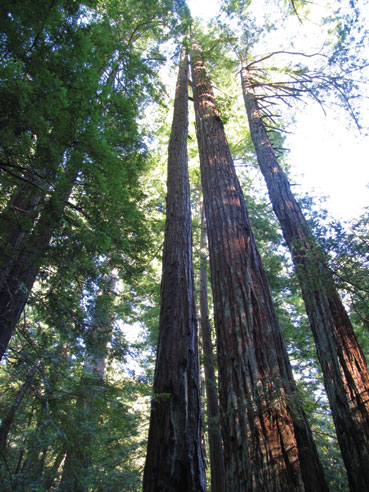 The needles of the Redwood also reflect this polarity of dark below and light above. The lower needles are broad and long, breathing the moist cool air below.