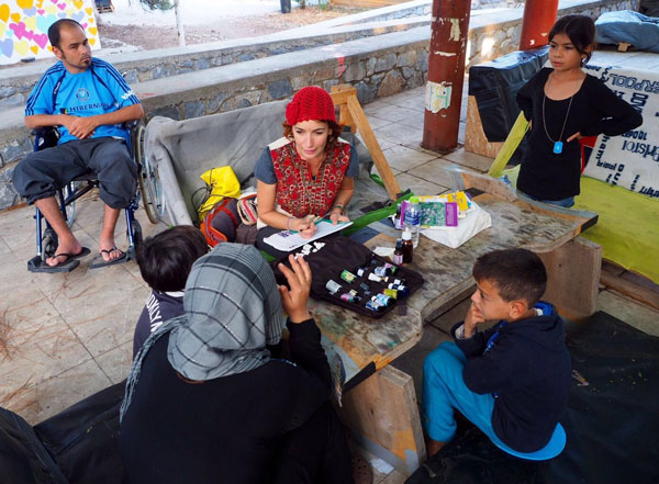 Enjoy a photo montage of the work of Light Without Borders, providing eye glasses, flower essences and loving care to the refugees in the Greek encampment: |