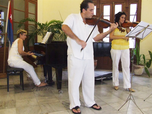 works as a pianist and coordinates a chamber group of professional musicians in Cuba, the trio "Anima Voice," which includes violin, viola and piano. She is a pianist repertorist specializing in violin, while the other two musicians are instrumentalists with the National Symphony Orchestra of Cuba. As therapists, they work to increase public awareness that art is not just a result of culture but is spiritual in nature. They play music that characterizes the flower remedies, and also other works from a more universal repertoire. Their concerts usually offer tea in addition to a flower essence formula that allows the public to tune into the spiritual message of the works. They provide this at no cost to the public, and the benefits are explicitly enjoyed by all present.