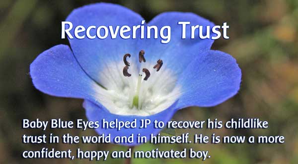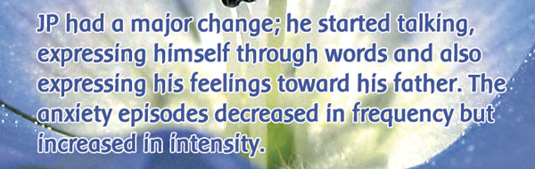 JP is an 8-year-old boy who first came to therapy with his mother after being diagnosed by a psychologist with extreme anxiety and intolerance to changes. At that time his little sister was about to be born, so the psychologist asked JP´s mother to wait 6 months and see if the anxiety disappeared. At the time he began flower essence therapy, any change in his life schedule caused him to become very nervous and to bite his school jackets, sweaters and pencils to reduce the stress. He felt very insecure in social situations and rarely dared to approach a group of boys to play. He was always asking what was to be next in his activities. His mother said that sometimes he broke the house rules in order to please a friend.