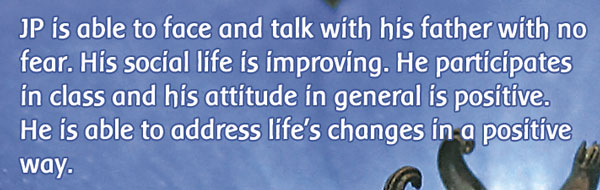JP began having a new social life at school. He became more kind and friendly. He started to be able to solve problems and to solve them without feeling stressed. The reflex to destroy and bite things also stopped. He started hugging his mother and became very loving with her. After four months of flower therapy, from November 2005 to February 2006, his teachers called the parents and asked them if JP was under some kind of therapy, because he was totally changed in a good way. When the parents told the teachers about the flower essence therapy,the school advised them to continue with it.