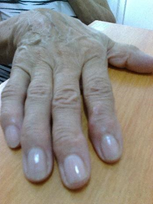 In the beginning, she had an extrusion of synovial fluid in the right hand, which was painful and prevented her from articulating the finger. The Hospital, where she used to go for assistance, recommended surgery (the diagnosis was hand osteoarthritis).