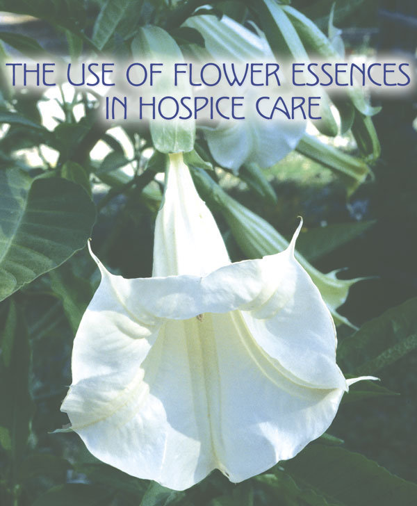 Receptive to the flower essences and acceptance by family To make a long story short, I introduced essences gingerly with this family, a very strong Catholic family who so loved and cared for this woman, and were not able to accept her impending death; they continued to ask for medical intervention when it was not appropriate. I explained the essences to them as gently as I could and they looked at me suspiciously but with an attitude of “whatever.” And so, every time I came in the room I would talk to H. and I would explain to her what the essences were for, and that they would help her with this difficult transition. After about four or five days, the younger daughter again asked for a series of medical tests and I said, “Your mother is dying.” The daughter looked at me angrily, turned around and left the room. I went to her and put Walnut and Five-Flower on her wrist and said, “I know this is very difficult.”