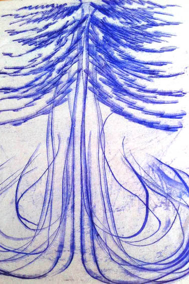 Deborah Koff-Chapin’s website offers a complete array of resources for learning and practicing Touch Drawing. Before offering Touch Drawing to others, I studied Deborah’s materials, including the practitioner’s manual, practiced Touch Drawing personally for several years, and attended an in-person training with Deborah at an International Expressive Arts Therapy Association conference. I think of Touch Drawing as a knowing of the heart. The process is very fluid, and it is the order and structure provided by the materials and the attentive and experienced presence of the facilitator that allow this expressive work to unfold fully and safely. In the context of flower essence therapy, I find that offering a Touch Drawing experience fits well in a session other than the initial intake which has its own rhythm and requirements of time and energy from a client. Here is an example from my fourth session with client “B” whom I saw when working on my professional Practitioner’s Certificate from the Flower Essence Society . A mother of young children who led a very busy life, “B” drew strength from spirituality and her church which were true touchstones in her life. Arriving at this 90-minute session “B” announced that “not much has been accomplished on using the essences.” We discussed her progress in terms of her initial goals and found that a major worry had dissipated, a problem with one of her children had resolved, and she had developed more trust in what she termed her inner knowing. After talking through many issues, “B” decided on a new goal: more simplicity in her life. Toward that end she wished to resume her practice of devoting a few minutes each morning to reflection that she called " Holy Solitude ." The difficulty she expected was finding and dedicating this time for herself in the course of a busy morning full of family and work tasks. We then identified a new flower essence formula. In a session with art making, I offer a client an initial dose of the newly selected essences (I use kinesiology/muscle testing plus my clinical sense) before engaging in expressive art. This brings the immediate support of the flowers during the art-making and allows me to observe any effects that might need attention. For “B”, we continued Penstemon which she had been taking for inner fortitude and perseverance, and added Heather and Cherry Plum . “B” made a series of about 20 drawings that followed a pattern I have come to recognize in the therapeutic use of Touch Drawing : initial drawings exploring materials and possibly blocks, transitional drawings that begin to have coherence and a new form, a drawing imbued with meaning and transformational possibility, and final drawings that elaborate on this theme. The series of drawings began with exploring mark-making and possibly blocks. Outlines of a new form began to emerge in the two gentle transitional drawings, followed by a soulful drawing of a tree and more drawings. When finished she expressed great happiness with and love for the tree that she drew, named the piece " Holy Solitude ," marveled at how it had come about, and planned to frame it and keep it near the breakfast table where she meditates in the morning. 1. Beginning drawings