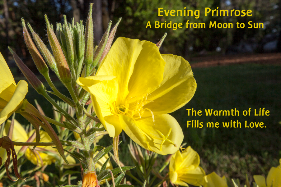 The healing signature of each plant is revealed in such dynamic forces, particularly those of polarity. So although the Evening Primrose is resonant with the Moon, the yellow radiance of its blossoms suggests a strong solar emanation. Indeed, Evening Primrose forms a unique bridge from the Moon to the Sun, and it is this picture we must hold most vividly to understand its properties as a flower essence. If we follow the Evening Primrose through its diurnal cycle, first opening its blossoms in the evening and shining in the moonlight, we also sense how as daylight dawns, its golden flowers are offered as a gift to the Sun.