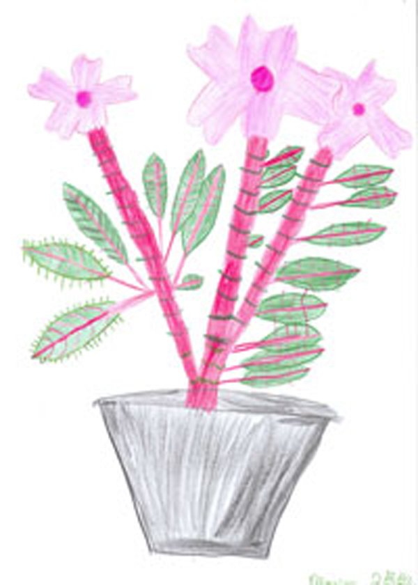 Following is a report and photographs by Rosana Vieira regarding a new art program initiated at Núcleo Mãe Maria in Campinas, Brazil. This project, originally proposed by Rosana to honor the 120th birthday of Dr. Bach, has given her great joy while observing the excitement of the children, their motivation in doing the art exercises and also the benefits it has provided them. Rosana has also found that it has provided her with further tools to enhance and enrich her role as a therapist in relationship with the children. The plant observation exercise in which they were asked to draw an Impatiens plant exactly as they saw it, from their own perspectives and their own realities, provided an opportunity for Rosana to closely observe their behaviors. The flower chosen to be drawn by each of the children after listening to Bach’s “The Story of the Travellers” also provided helpful information for her therapy with them. In addition, the assistants who help during the art class take notes for Rosana regarding what the children speak of in class which helps Rosanna in her work.