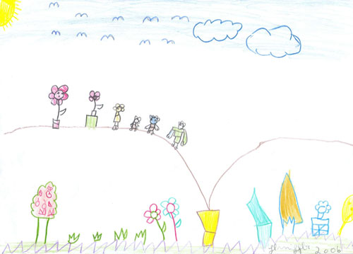 Scleranthus, the “decision flower,” also caught the attention of some of the children (second from right with "v" in dialog box, drawing below). Making good choices in their own lives or choosing the right way, is a challenge some of them face very early in life, either in or outside of their homes