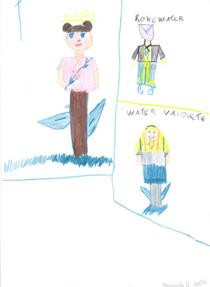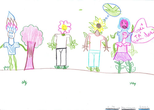 Neide told this story to the children and asked them to draw what they understood or the character which caught their attention the most. What was the most interesting though, was the fact that they asked the teacher if they could draw the characters as people. And, so they did; they combined plant structures with human bodies, drawing them with stems and leaves instead of legs and so forth. They captured the “essences” of the remedies.