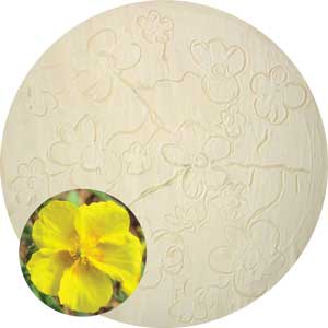 For this project, Neide proposed a different form of art work. They have prepared round wooden panels on which they will reproduce the image of Rock Rose on the ground, as seen from above – as though the flowers were scattered gold coins. First they will sculpt texture onto the boards along with the drawings and when it is dry they will paint them.